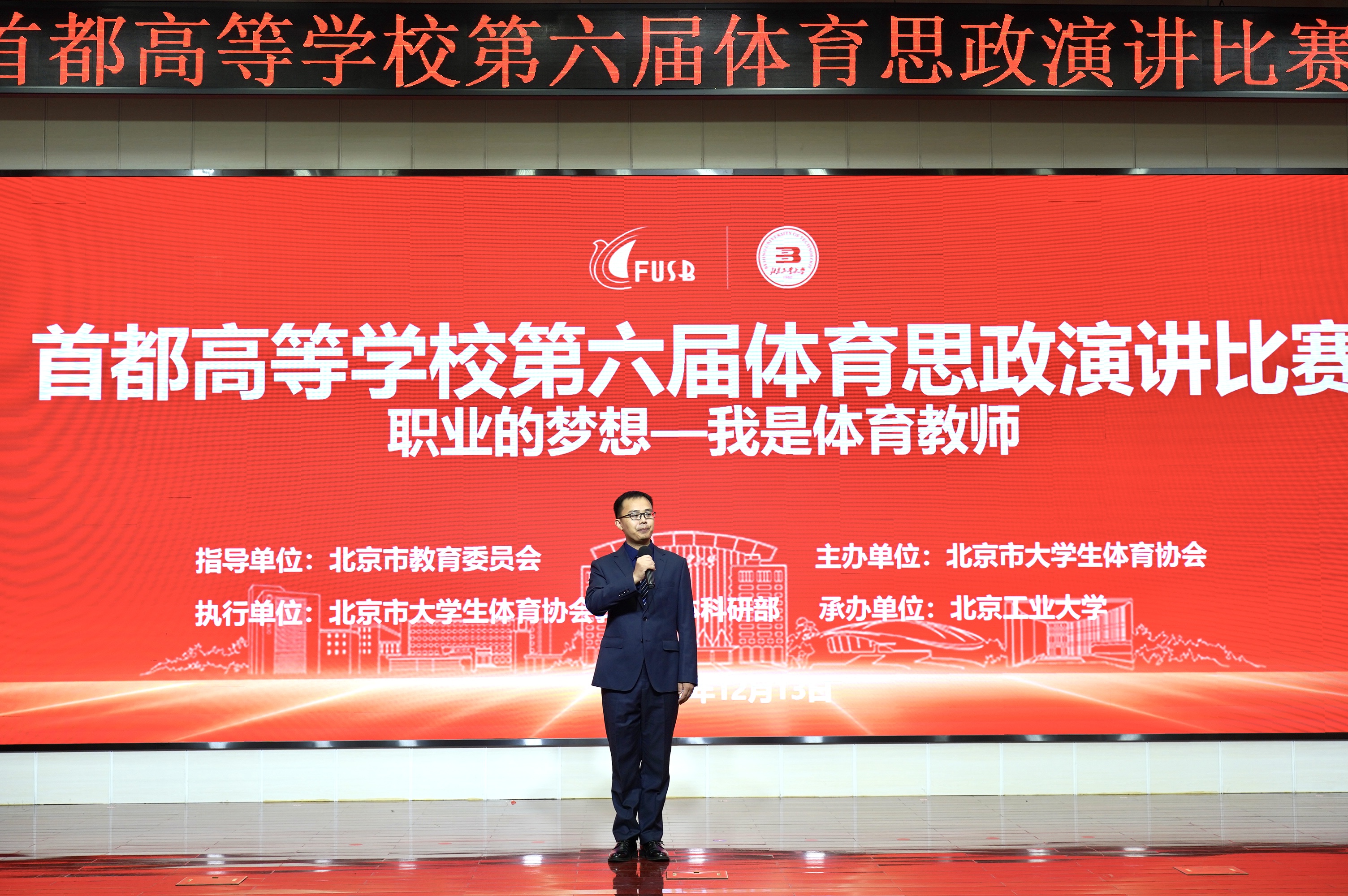 1213日,由北京市大学生体育协会主办的首都高等学校第六届体育思政演讲比赛在北京工业大学举行。我校体育教研部教师胡少辉表现出色,荣获一等奖,并受邀在首都高校第十九届体育骨干教师培训班上作经验分享与展示,为学校赢得了荣誉。