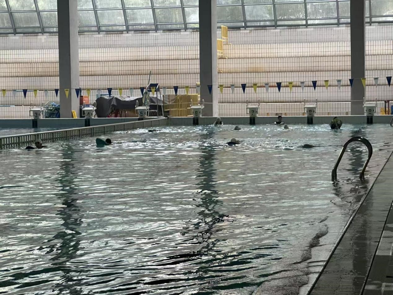 泳池边,水花四溅,笑声连连。老师耐心地分步骤示范讲解,不同水平的同学都能找到适合自己的练习节奏。