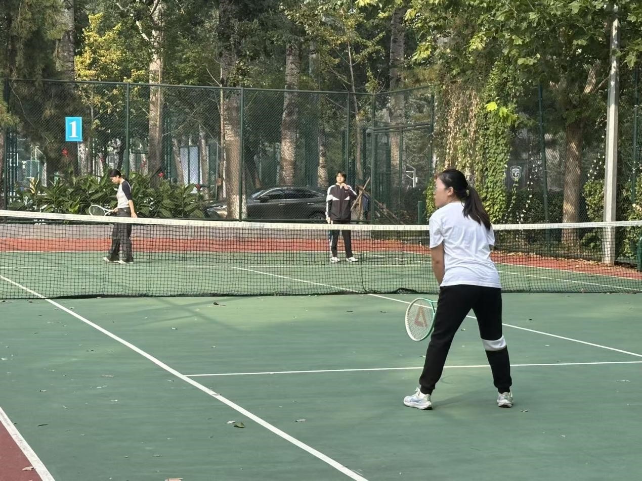 网球场上,球影画出一道道弧线。同学们在实践中不断调整姿势、强化动作要领,在重复练习中逐渐掌握技巧。