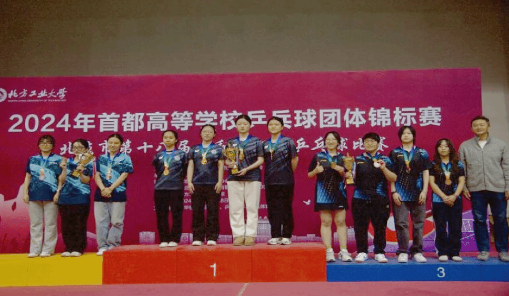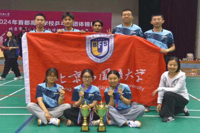 12月7日至8日,2024年首都高等学校乒乓球团体锦标赛暨北京市第十八届“和谐杯”乒乓球比赛在北方工业大学举行。北外乒乓球队在体育教研部教师王娟的带领下,共派出9名队员参加了男子团体和女子团体的比赛。