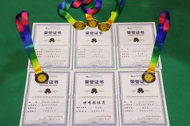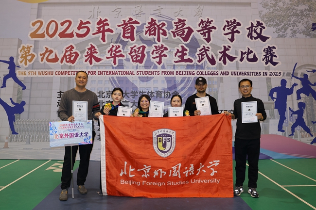 11月23日,2025年首都高等学校第九届来华留学生武术比赛举行。北京外国语大学代表队由留学生办公室凯琳担任领队,体育教研部胡少辉担任教练。经过激烈的比拼和角逐,北外代表队斩获三枚金牌、一枚银牌、一枚铜牌,胡少辉荣获“优秀教练员”称号,创造了北外参加该项赛事以来的最佳成绩。