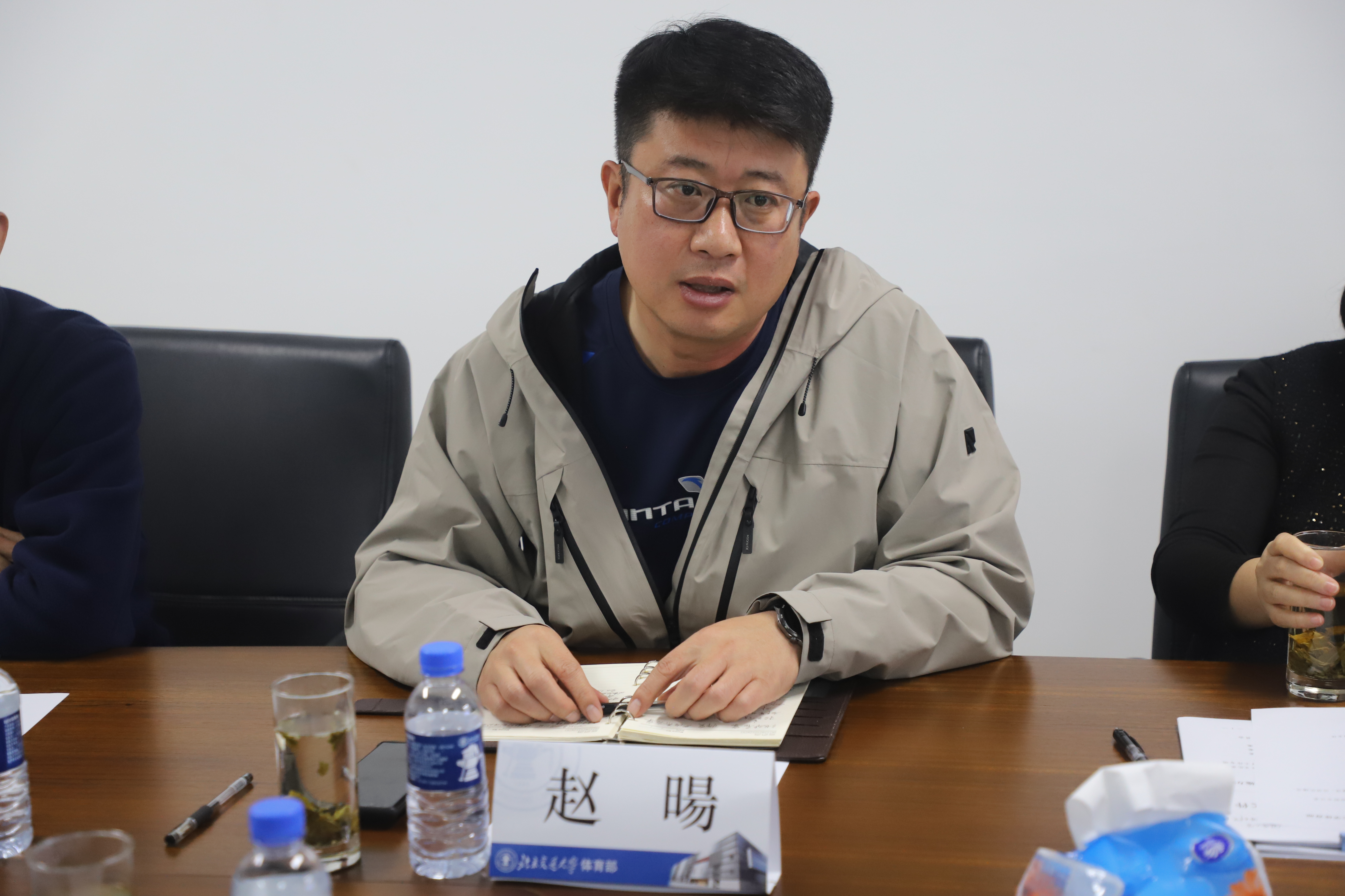 北京交通大学体育部主任崔迎春、直属党支部书记梁凤波及副主任赵暘等热情接待了北外体育教研部的来访。调研座谈会由梁凤波主持,双方围绕基层党组织建设、公共体育教学、学生体质健康标准测试、高水平运动队建设以及师资队伍建设等方面进行了深入交流与热烈讨论。