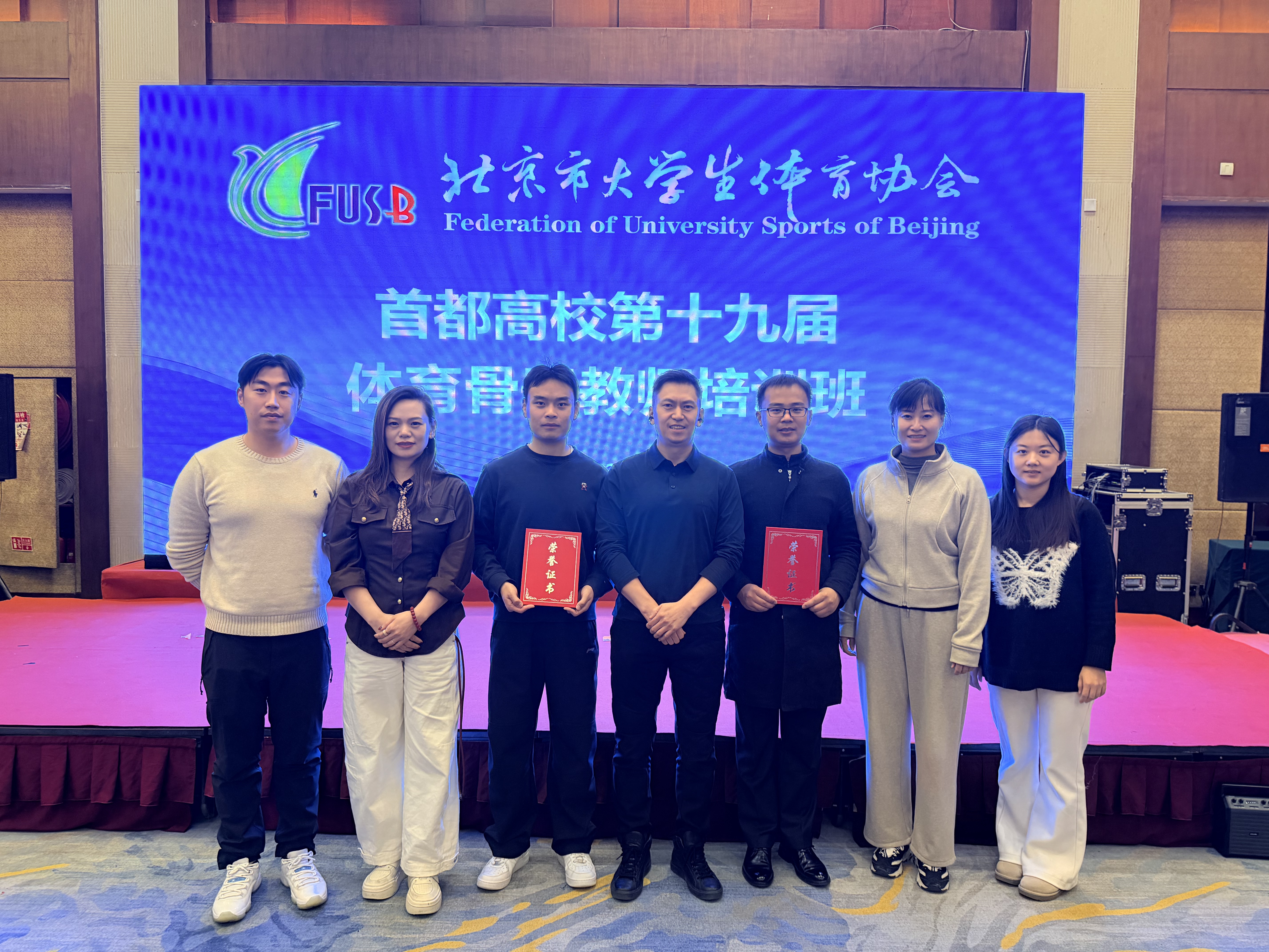 12月20日至21日,由北京市大学生体育协会主办的“首都高校第十九届体育骨干教师培训班”在北京瑞麟湾会议中心顺利举行。我校体育教研部副主任迟小鹏率青年教师潘红静、王燕燕、甄岢鑫、张文卓、李炬、胡少辉参加了本次培训。